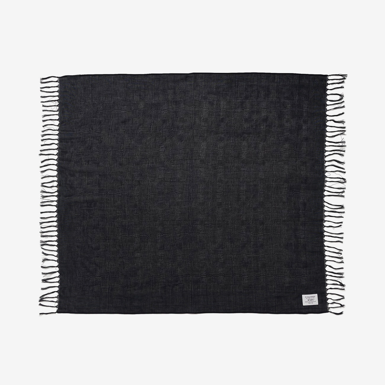 ドビー織機で色々な織り組織を組み合わせた長方形タイプの大判ストール。両端はフリンジ始末。
